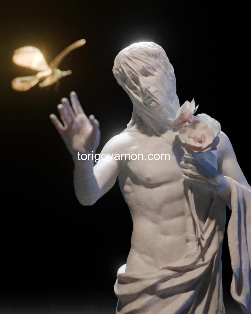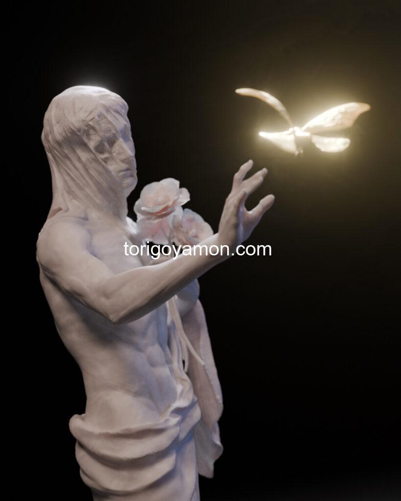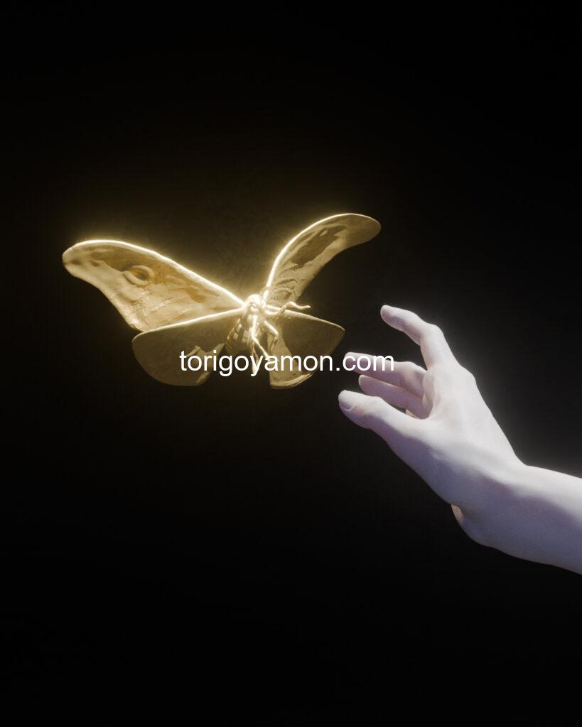 He greets the soul, seen here as a drifting moth, with a hand not to take, but to guide.