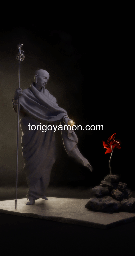 Learning that Jizo originates from the Vedic earth goddess Prithvi, I gave him/them subtle feminine features.