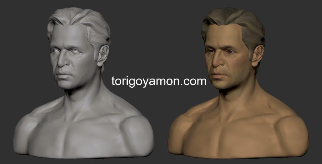 Before the final render, I made a few adjustments to improve the likeness and gave him a shirt because the bare torso looked a bit awkward.